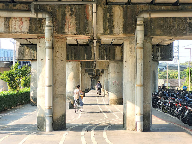 After renting bikes from a shop outside the Houli train station, we followed the signs south and then east under the railroad tracks until we reached the start of the bike path. The route then runs right beside, and sometimes under, the current elevated railway for a while.