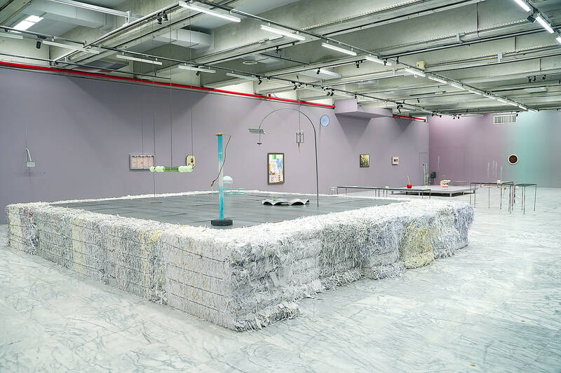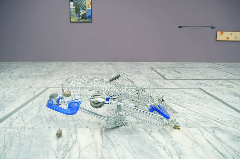 On the lowest floor of the Taipei Fine Arts Museum (TFAM), a large room contains household items from coffee cans and wrapping paper to a mangled shopping cart. This is Lili Deli, the latest exhibition by multi-disciplinary artist Steph Huang (黃麗音).