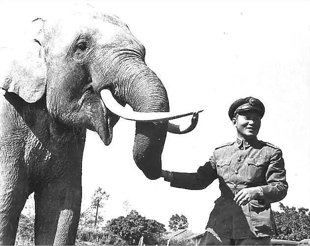 Of the original group of 13 elephants, six died and four were sent to zoos across China; these last three would accompany General Sun Li-jen (孫立人), commander of the New 1st Army, to his new post in charge of the Army Training Command in Kaohsiung.