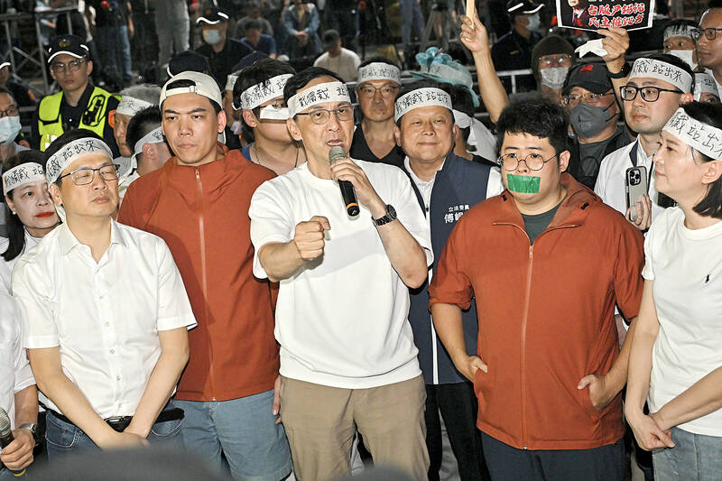 That was likely part of Chu’s plan — to underscore his resolve and perhaps become something of a martyr to the party faithful if prosecutors press charges. It also echoes the actions of the TPP that drew thousands of mostly younger supporters to protest the detainment of their founder Ko Wen-je (柯文哲), a demographic that the KMT and Chu deeply covet.