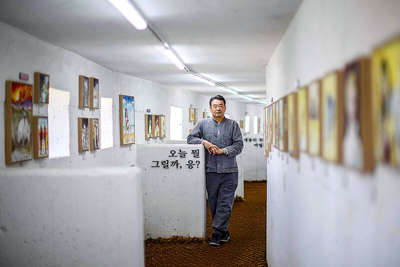 The rest of the time, cartoonist and neighbor Kim Dae-nyeon uses the bunker to exhibit his artwork under his alias Danny Kim.