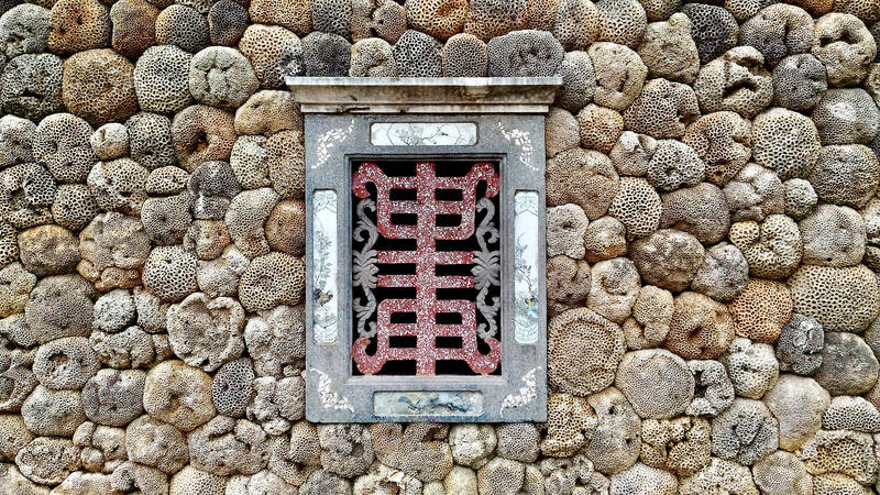 The other major attraction in Erkan Village is the historic village center, where you can see a mix of restored and semi-dilapidated coral homes. Before modern building techniques were introduced to Penghu, most homes were of this style: handpicked coral rocks were brought back to the village and painstakingly stacked to form the walls of a house, with stone windows and standard roof tiles completing the exterior. Some of the exterior walls are now whitewashed, which fills in the deeper cracks between the coral rocks, but leaves many of the coral’s intricate patterns still visible.