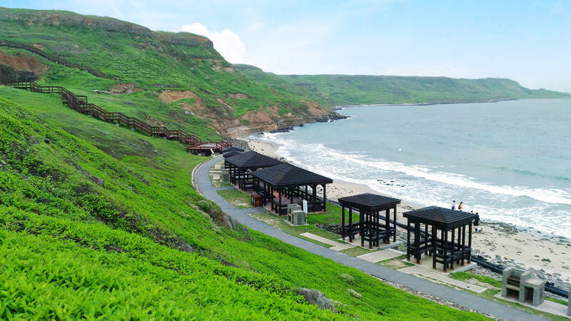If you arrive down south earlier in the afternoon, don’t miss the opportunity to visit one of Penghu’s best beaches and the author’s personal favorite: the Neian Recreation Area, located just beyond the Neian Village (內垵) center, on the north side of the island. There are toilets and showers, as well as shady pavilions right above the water. The sand is fine and soft, and the shallow slope of the sea floor makes it ideal for swimming.