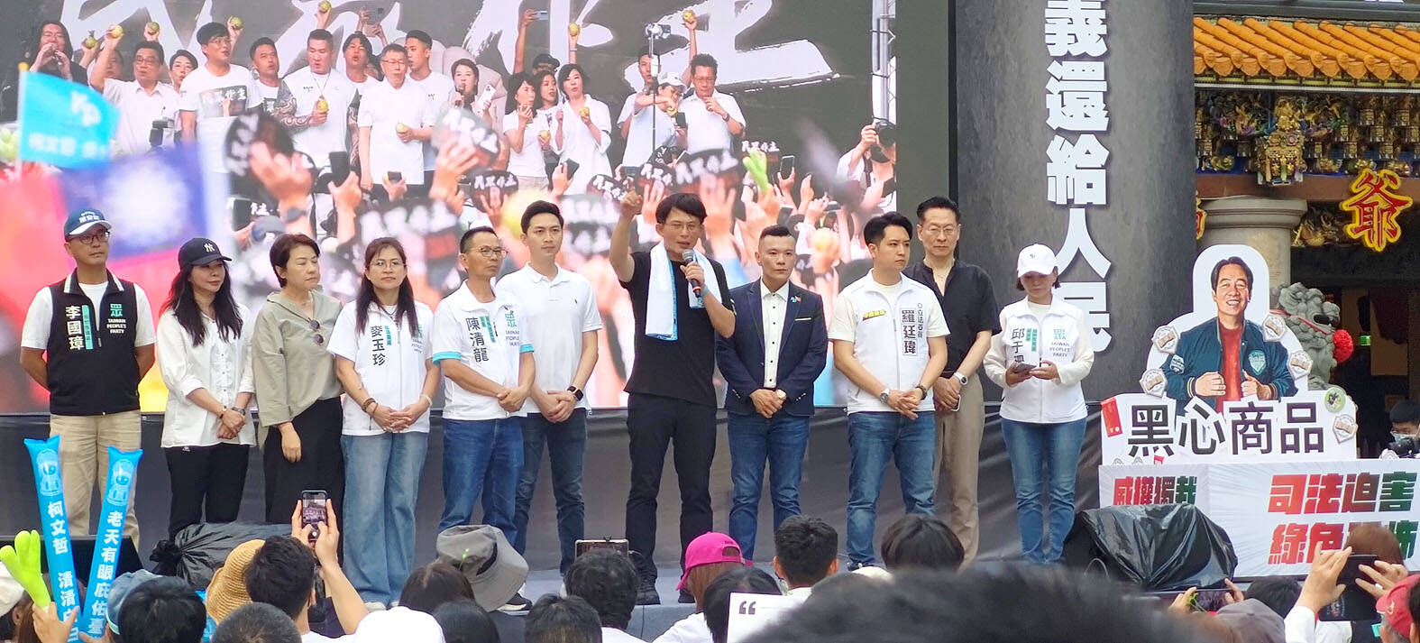 The Taiwan People’s Party (TPP) on May 18 held a rally in Taichung to mark the anniversary of President William Lai’s (賴清德) inauguration on May 20. The title of the rally could be loosely translated to “May 18 recall fraudulent goods” (518退貨ㄌㄨㄚˋ!).