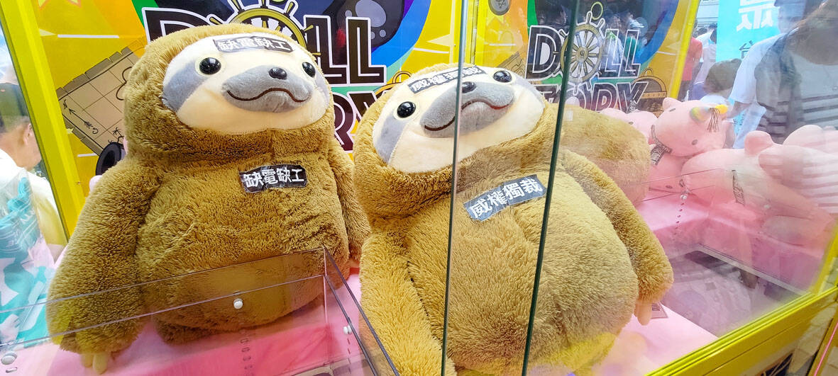 Perhaps also to make the event feel more child-friendly, there were a few claw machines with big, adorable stuffed bears in them bearing apocalyptic stickers about dictatorship and saying that electricity shortages will lead to job shortages. Some were enthusiastically playing the machines, but it appeared that the cuddly-looking bears predicting doom were too big for the machines to handle.