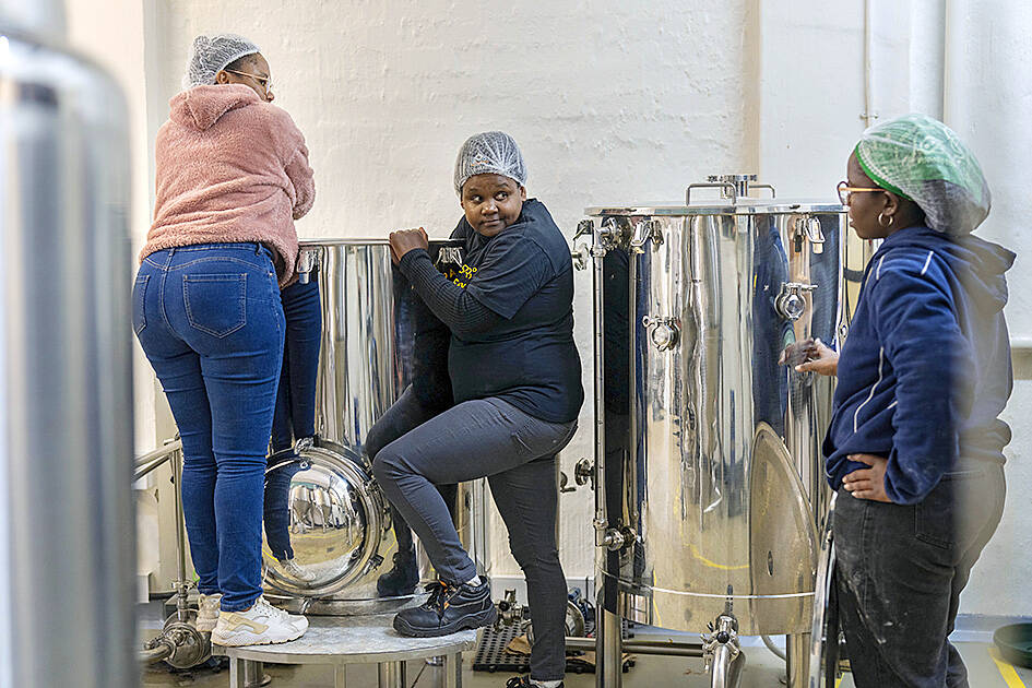 At her microbrewery in Johannesburg, she’s teaching 13 young black graduates — most of them women — the art of beer making.