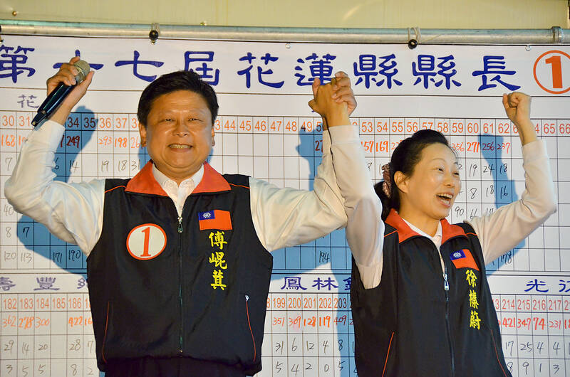 The same year he ran for Hualien County commissioner against the officially nominated KMT candidate, and won as an independent, winning re-election in 2014. He divorced his wife Hsu Chen-wei (徐榛蔚) to get around nepotism laws and appointed her deputy commissioner, but was later found guilty regardless, and he and his wife paid fines to avoid jail time.