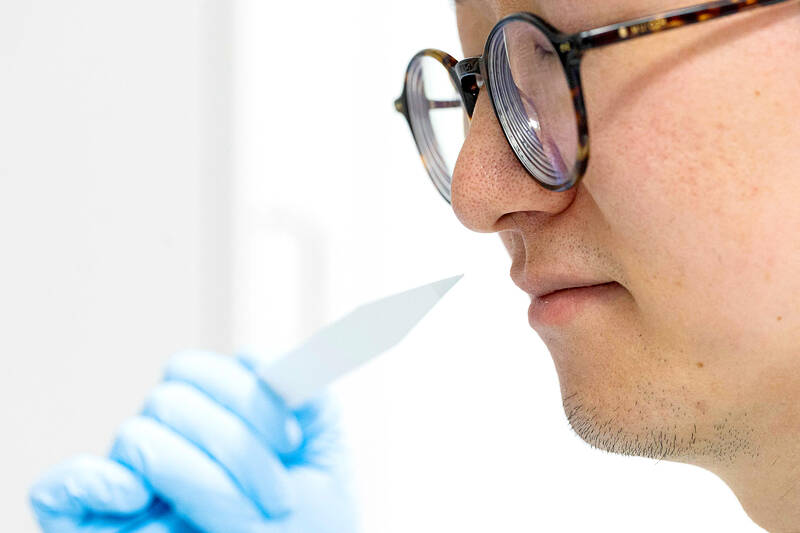 Shangyun Lyu, 31, came from China to study at the school and says that a professional sniffer can get by with knowing about 500 scents. Being able to break down odors into their chemical components is key.
