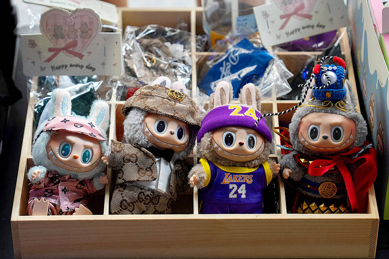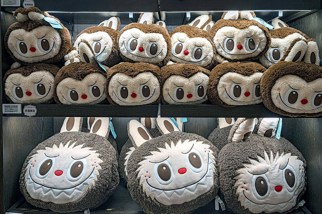 Labubus, a furry bunny-eared elf sold by Chinese toy company Pop Mart, have gone viral this year. Touted by celebrities from Rihanna to Blackpink’s Lisa, the “ugly-cute” dolls have been so in demand that in the UK Pop Mart pulled the grinning monsters from all stores because of the risk of fights breaking out between customers. In the UK they retail for £17.50 (NT$693), while official versions in China sell for between 99 and 399 yuan (£10.30 – £41.40), with resale prices soaring much higher.