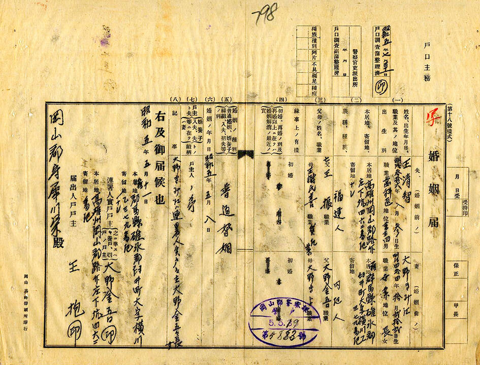 The main obstacle was the fact that Taiwanese did not fall under the Japanese koseki (family registry) system. A Taiwanese spouse could be entered into a Japanese registry, but not the other way around.
