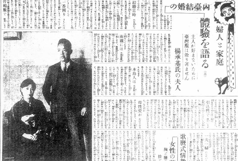 Hsu Chang’s (許章) wife Ueno spoke decent Taiwanese and preferred wearing Taiwanese clothes, although the family lived in a Japanese-style house. She maintained good relations with Hsu’s relatives and women in the community, telling the newspaper that she felt no difference in sentiment between Taiwanese and Japanese.