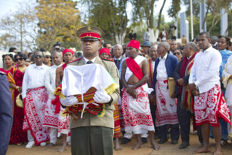 In a symbolic gesture, King Toera’s heir and great-grandson, the newly enthroned Sakalava King Harea Georges Kamamy, sprinkled his ancestor’s coffin with water from the sacred Tsiribihina River to “welcome him home.” The coffins will be reburied in Menabe, 800km from the capital.