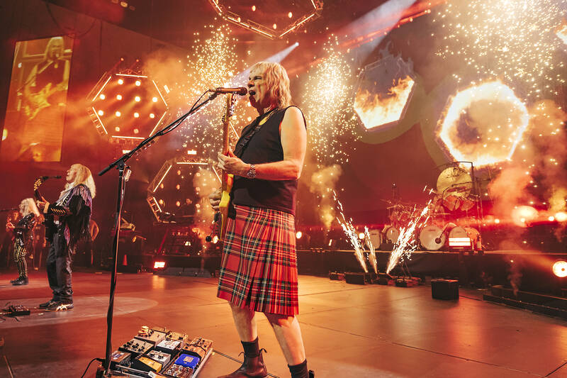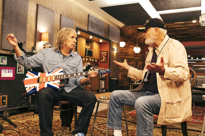 Mortality is a constant theme, from the concert promoter who suggests one or two of the three members die onstage for good publicity — “Would you settle for a coma?” one band member offers — to the Shearer song Rockin’ in the Urn to a photo shoot in a cemetery to the whole thing ending in a hospital. Bones creak when they settle into chairs; paunches are hard to hide and reading glasses are necessary. This is a movie that celebrates those whose “candles cost more than the cake.” Yum, dig in.
