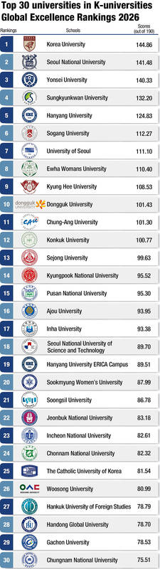 The K-universities Global Excellence Rankings 2026 assessed 54 four-year universities based on international student enrollment, institutional size and regional representation. Data sources included official university disclosure statistics (as of June 2025), Naver Scholytics for research output and The Korea Times archives and public records for graduate impact.