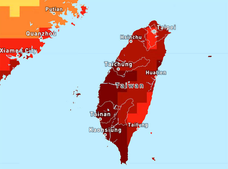 For most of last month, Taiwan was a patchwork of reds, implying there’s a direct link between roasting urban environments and mankind’s burning of fossil fuels.