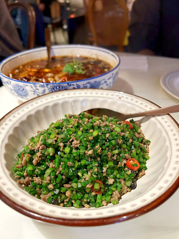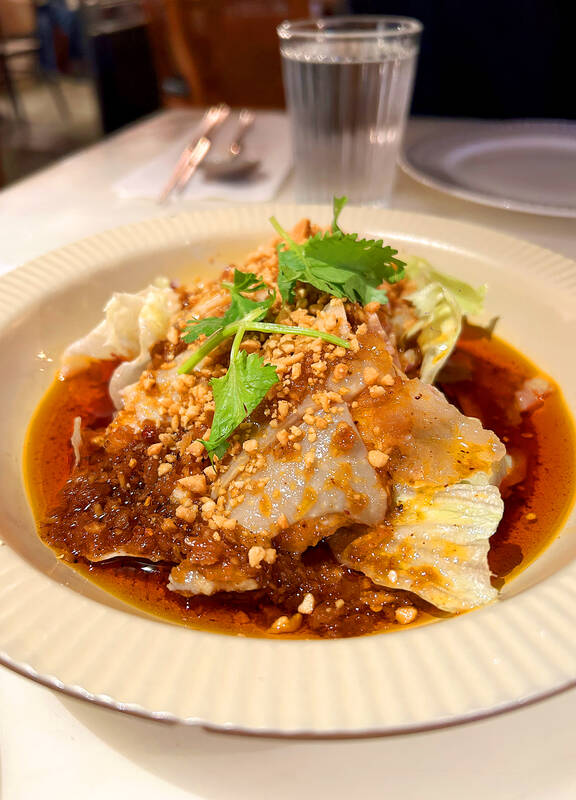 For mains, we opt for the “Signature Boiled Sliced Beef” (NT$490), boiled not in water, but smoky chilies, numbing peppercorns and an intense chili oil until it packs a hefty punch worthy of its three-chili rating.