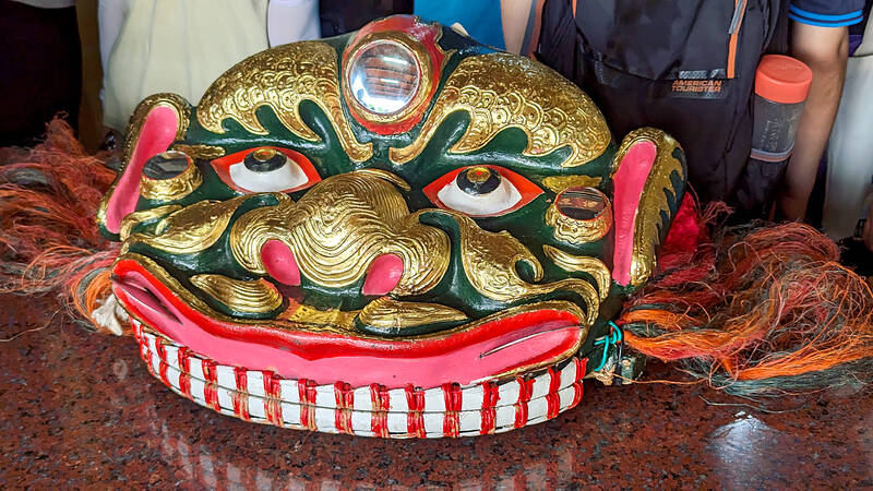 Liang writes that the lion dance ritual began taking shape in the late 1940s, after the private shrine was established and began holding ceremonies. They learned from nearby masters, but both the lion head design and dance moves remain unique.