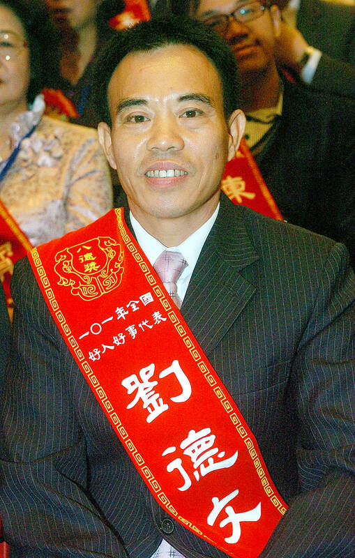In the leafy back blocks of a military cemetery in northern Taiwan, Liu Te-wen (劉德文) strides through a room holding rows and rows of shelves. He stops and stoops to the lowest row, opening a small, ornate gold door. He pulls out an urn, bundles it into his lap, and hugs it.