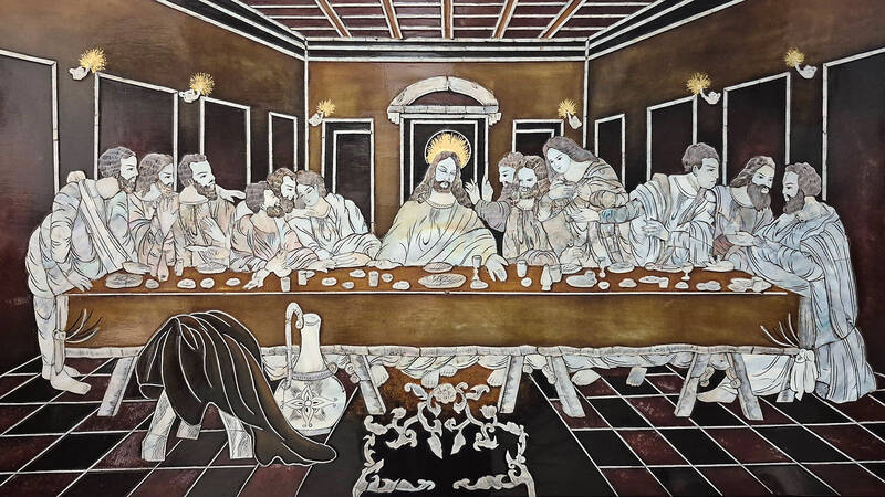 Further evidence of his proficiency in English and familiarity with Western culture can be found in the one artifact on display that is actually more accessible to English speakers: a record of his application for employment as an interpreter for the American military, handwritten in English. Other touches of foreign influence include a box of Chivas Regal scotch hidden behind a Chinese tea set, as well as a lacquer painting of The Last Supper and a plaque declaring that “Jesus is Lord of Our House.”