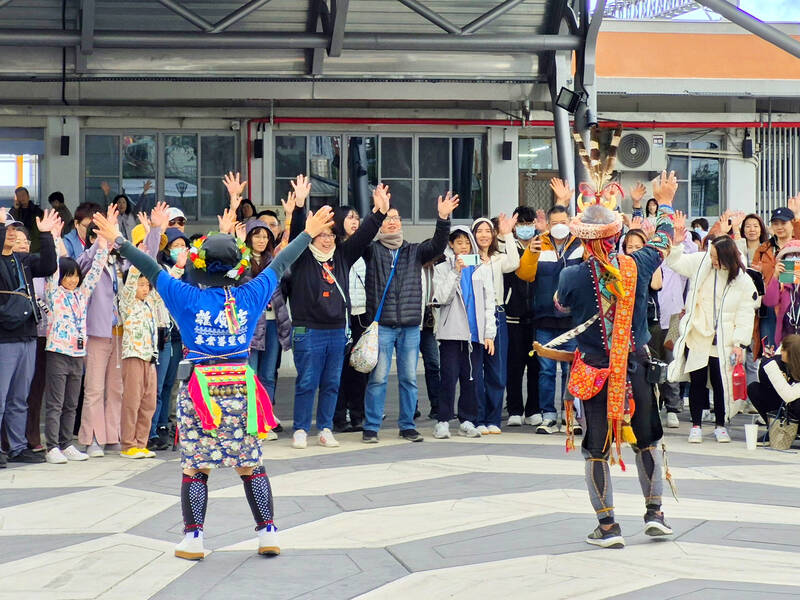 Back in front of the station, the three Paiwan guides led the group in a song and hand-waving exercise that seemed mostly performative rather than intended to impart any cultural understanding to the visitors.