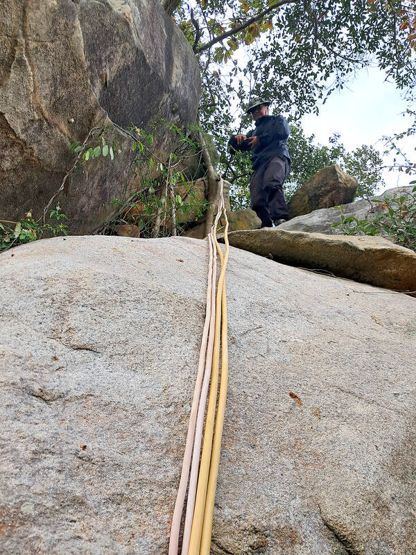 Although the ancient trails were overgrown with weeds, the team was still able to first find Sheep Horn Rock (羊角石), and 30 meters behind that, Sheep Horn Cave.