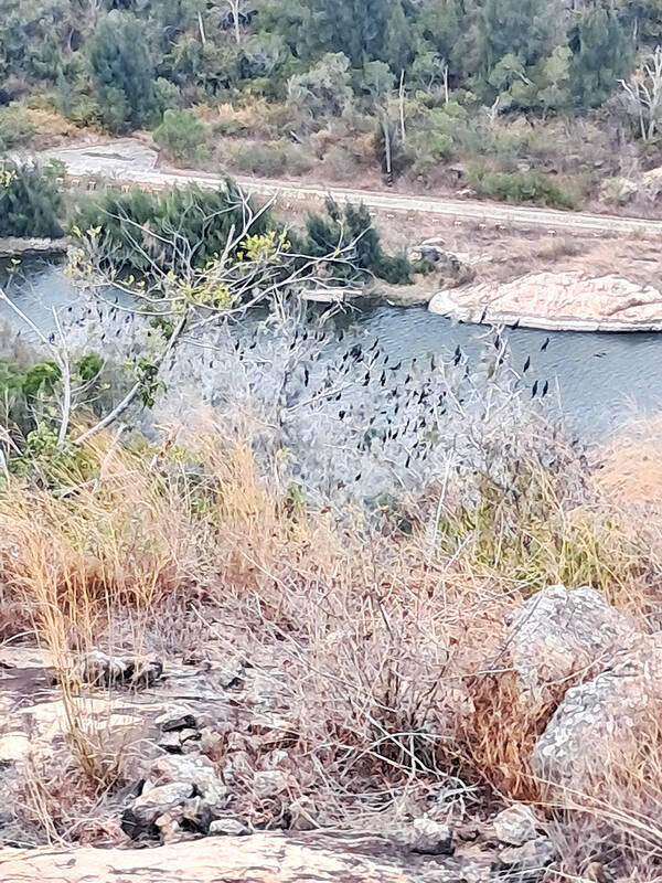 Cormorants, which migrate from Siberia to Kinmen in the winter, are a common sight and it’s their droppings and not snow that makes the slender Australian pines (木麻黃) alongside the reservoir white.