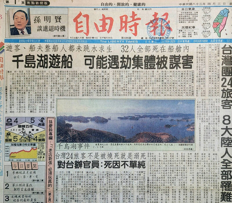 The tour group involved in the tragedy left Taiwan on March 20, 1994 for a two-week trip. On March 31, they embarked on a cruise of Qiandao Lake aboard the Hairui (海瑞), but they never arrived at their hotel that evening. The next morning, the local tour operator reported the boat missing.