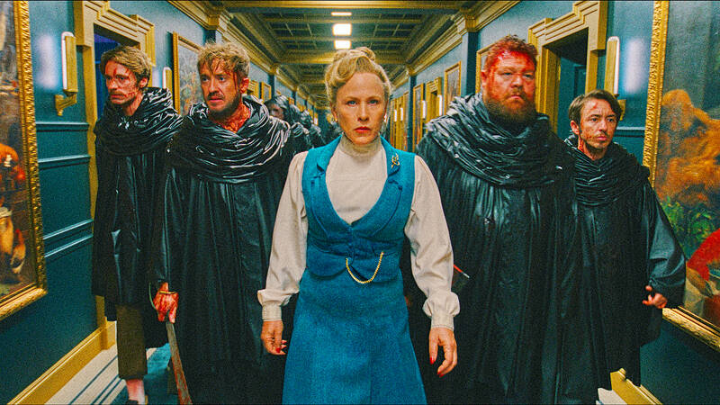 Sokolov leans into a kind of gimmick in which the victim of a disemboweling suddenly grows still and silent for a beat until sprays of blood shoot out from their various wounds like a fire hydrant. He’s also got slo-mos of assailants hanging in the air poised for murder, plenty of limbs cut off and shotgun booms. Costume designer Neil McClean fumbles the satanists’ cloaks, making them fussy and vaguely shiny, like art smocks for kindergarteners.