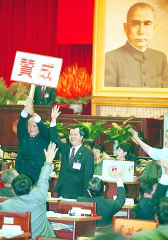 For the first time ever, the Assembly also voted on the proposed amendments by open ballot -- making public the stand of each deputy. Determined to have the marginalization package passed, the KMT, DPP and New Party caucuses had all announced they would take disciplinary action against deputies disobeying the party line.