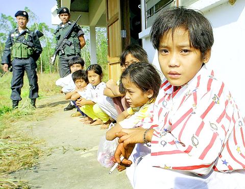 Yesterday, true to form, Luther Htoo was smoking a cigarette when the child soldiers were presented to the media at the Border Patrol Police headquarters near where they surrendered. He grinned when a reporter shouted his name.
