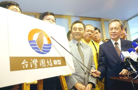Former interior minister Huang Chu-wen (黃主文) unveiled the party's name, the Taiwan Solidarity Union (台灣團結聯盟), and the party's logo yesterday.