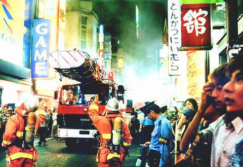 The explosion ripped a large hole in the wall of the building and fire gutted the third and fourth floors, causing panic in the narrow, crowded streets in the Shinjuku district, popular for late night drinking and sleazy entertainment.