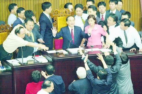As on Thursday, senior mem-bers from the KMT blocked all entrances to the legislative chamber and engaged in sporadic brawls with their DPP colleagues.