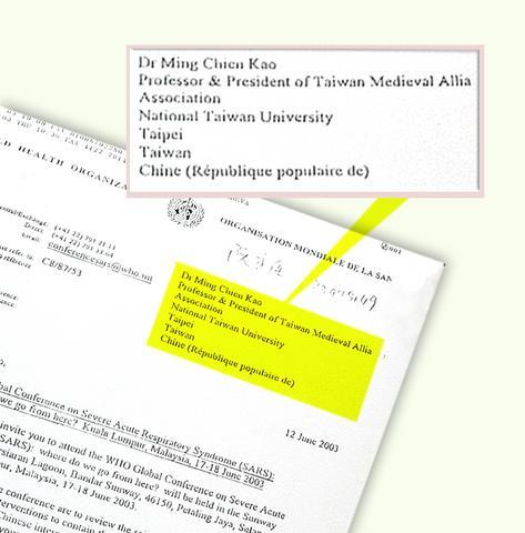 The WHO's invitation letters to the four Taiwanese experts to join the conference were e-mailed to Beijing on June 6. The Beijing-based Chinese Medical Association delivered the letters to Taiwan last Tuesday, sources said.
