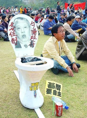 Protesters yesterday heaped criticism on Tung, who has faced calls for his resignation over the anti-subversion bill and alleged economic mismanagement.