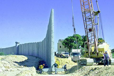 Workers raised 8m-high concrete walls that are rapidly separating the Palestinian area from Jerusalem, a city which Abu Dis is highly dependent on for employment and other services.
