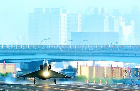 The landing on the Jenteh section of the freeway was the climax of the military exercise, which began yesterday and involves the air force, army and navy.