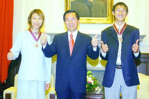 "The excellent performances of the taekwondo competitors in Team Taiwan ... have accomplished Taiwan's dream of winning Olympic gold," Chen said after conferring the two athletes with the Order of the Brilliant Star, Fifth Class.