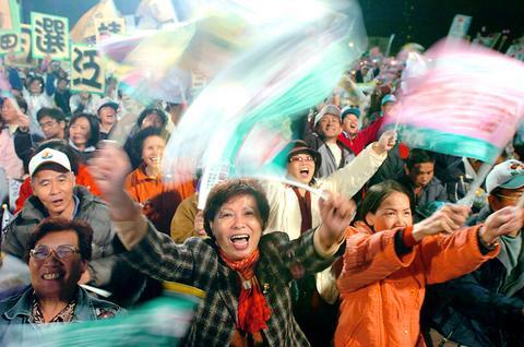 Earlier in the day, victims of the Kaohsiung Incident and the attorneys who defended them -- many of whom have now become governmental officials -- took to the streets in Kaohsiung to commemorate the incident's anniversary, and boost the Democratic Progressive Party's (DPP) election campaign only two days before the vote.
