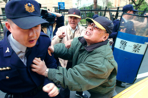 Hundreds of pan-blue supporters yesterday staged protests outside the court and minor clashes occurred between the crowds and some 200 policemen who had been brought in by the authorities to maintain order.