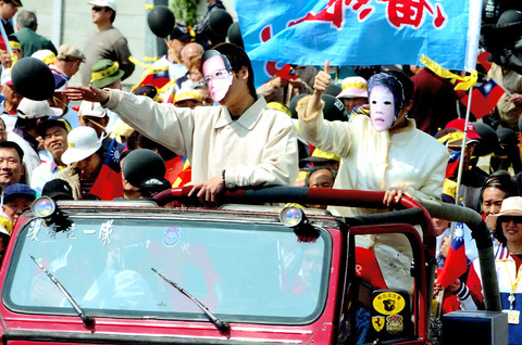 Thousands of pan-blue supporters, backed by gangsters from Mainlander organized-crime groups, staged demonstrations that lasted for weeks in front of the Presidential Office. They were protesting what they claimed to be the suspicious circumstances surrounding the March 19 shooting of President Chen Shui-bian (陳水扁) and Vice President Annette Lu (呂秀蓮) as well as the subsequent narrow pan-green election victory.