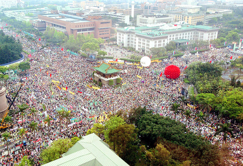 Around 1 million people, led by political leaders including President Chen Shui-bian (