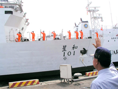 Two coast guard ships, the 1,800-tonne Ho Hsing and the 800-tonne Mou Hsing, departed Keelung for the island chains on Thursday.