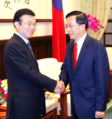 His comments came the same day as Chinese Nationalist Party (KMT) Chairman Lien Chan (連戰) met with Chinese President Hu Jintao (胡錦濤) in Beijing. It had been widely reported that Hu was ready to tell Lien that China was willing to sign a CEPA with Taiwan.