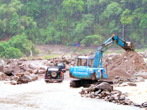 In Taitung, one man was reported missing after he fell into a river while working on the riverbank. Three farmers in Chiayi County narrowly escaped drowning when they went to harvest bamboo shoots yesterday morning. A police boat rescued them.