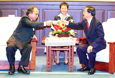 Following the announcement of the two nations' renewed ties yesterday, President Chen Shui-bian (陳水扁) received Scotty at the Presidential Office.