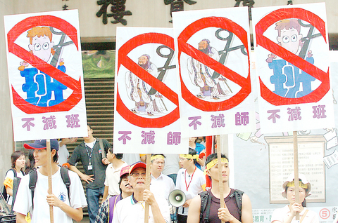 In addition to urging the MOE to "solve" the shrinking employment rate, the protesters called on the ministry to bring down the number of students to 30 per class, to cut by 50 percent the enrollments in teacher education programs, to levy a teacher tax and to use the money for educational purposes, and to establish a review process to weed unqualified teachers out of schools.