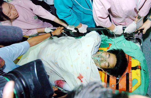 Approximately half an hour after yesterday's raid began at 9am, the injured Lin was captured and immediately hurried to Taichung's Kuang Tien General Hospital (光田綜合醫院).