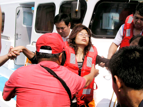 According to a statement from the Coast Guard Administration (CGA), the tourist boat Kuan-kuang Hao (觀光號) departed at 12:20pm for Hsiao Liuchiu island, about a half-hour's ride away, carrying 142 passengers and seven crew. Ten minutes later the blaze started. As the flames and smoke grew more intense, some passengers panicked and jumped into the water.
