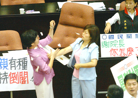 The turmoil came after pan-blue lawmakers condemned Hsieh during the National Affairs Forum, which preceded yesterday's legislative sitting.